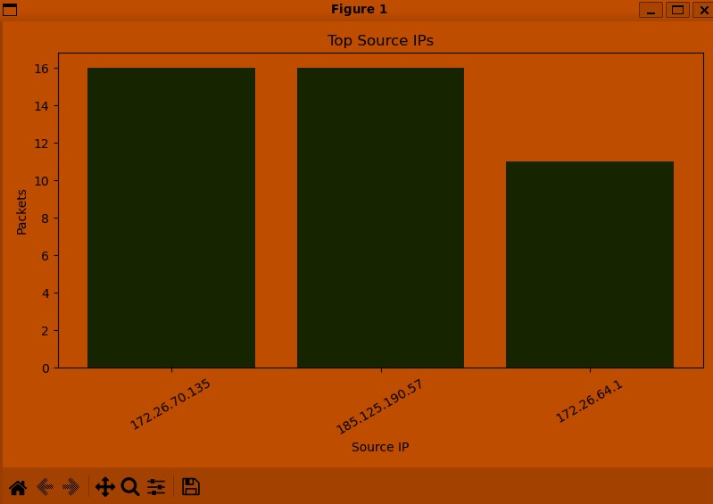 A Network Analyzer that thoroughly scans your internet interface for all traffic, sorts that traffic, and displays graphs to represent the data.